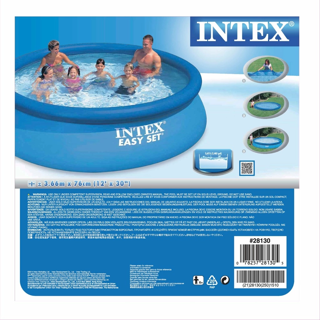 Het bovengrondse ronde zwembad INTEX Easy Set zorgt voor verfrissing voor het hele gezin. Dankzij de opblaasbare bovenring komt het zwembad tijdens het vullen vanzelf omhoog en is het binnen circa 15 minuten klaar om in te zwemmen. Het robuuste drie-laagse PVC zorgt voor een lange levensduur en veilig gebruik.