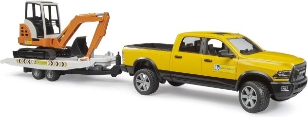 Nauwkeurig uitgewerkte BRUDER-set met een terreinwagen RAM, aanhanger en minigraafmachine die een realistische bouwplaats naar de kinderkamer brengt. Biedt een krachtige terreinwagen met openende deuren, geveerde assen en sturing met verlengbaar stuur. Het kantelplatform van de aanhanger vergemakkelijkt laden en lossen, de minigraver heeft een 360° draaibare cabine, afneembare bak, verstelbaar blad en rubberen rupsbanden voor terreinritten. Hoogwaardige afwerking van duurzame materialen en compatibiliteit met bworld-figuren zorgen voor lange levensduur en geweldig speelplezier.
