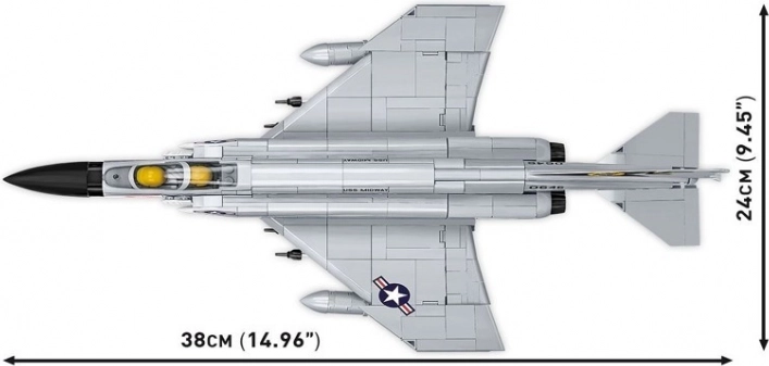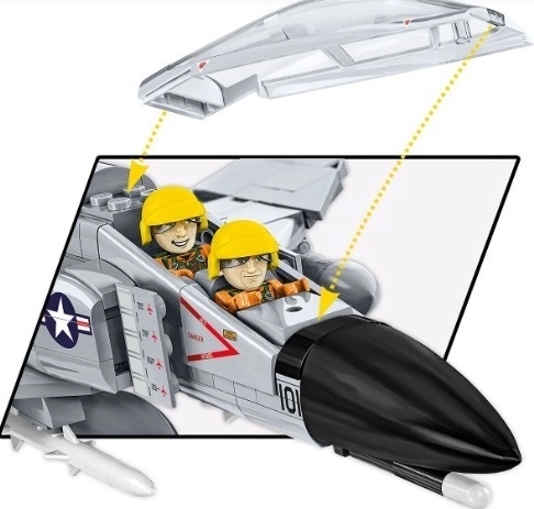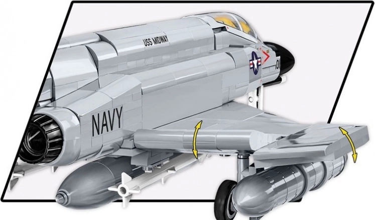 Het F-4 Phantom II-model is een supersonische multifunctionele jager die sinds de jaren 60 in de Amerikaanse luchtmacht diende. Het werd ingezet voor onderscheppings-, bombardements- en verkenningsmissies, bijvoorbeeld tijdens de Vietnamoorlog. Het model, gemaakt van 703 COBI-bouwstenen, reproduceert het vliegtuig op het vliegdekschip USS Midway, dat te bezoeken is in San Diego (VS). Dankzij de officiële licentie is het model gedetailleerd uitgewerkt naar het echte vliegtuig, met beweegbare rolroeren en een afneembaar landingsgestel en bewapening. De te openen cockpit biedt plaats voor symbolische minifiguren van piloten. De set bevat ook een displaystandaard en een plaatje met de naam en de schaal van het vliegtuig 1:48.