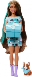 BARBIE met lang haar en turkooizen plukjes, een glinsterende jurk met paarse sterren en stijlvolle schoenen. Inclusief een knuffelige hond met sjaaltje.