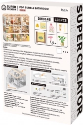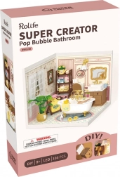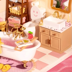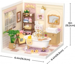 Maak je eigen badkamer‑diorama in zachte pasteltinten met een bad op pootjes, een spiegel, plankjes en tal van miniatuuraanvullingen. Dankzij nauwkeurig gesneden onderdelen van stabiele materialen bouw je het model eenvoudig en zonder lijm – met als resultaat een stevige, prachtig gedetailleerde mini‑scène, ideaal voor op een plank of als cadeau.