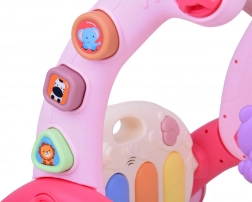 Het interactieve paneel met knoppen, melodieën en geluiden nodigt uit tot ontdekken en stimuleert het gehoor en de creativiteit. De breed uitgezette constructie van de walker, rubberen wielen en afgeronde vormen zorgen voor veiligheid en stabiliteit bij het oefenen van staan en lopen. Monteren gaat snel en zonder gereedschap, zodat je meteen kunt beginnen met spelen.