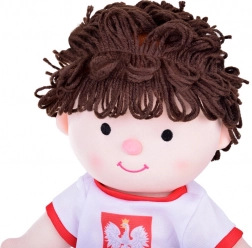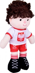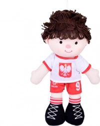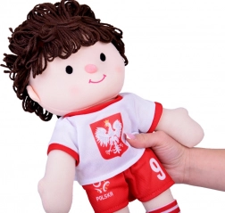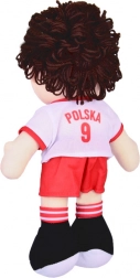 Deze superzachte voetbalpop in de kleuren van Polen wordt meteen de favoriet van kleine spelers en supporters. Het stijlvolle tenue met een adelaar op de borst en het nummer “9”, de sportieve schoentjes en het bruine haar geven de pop een authentieke look. Perfect voor rollenspellen, stimuleert de fantasie en de fijne motoriek.