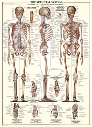 - Educatief thema: skeletsysteem met aanduidingen van de belangrijkste botten en structuren.