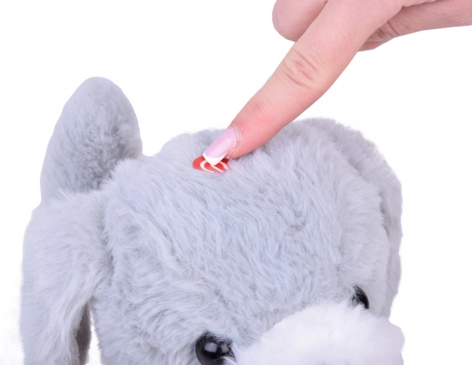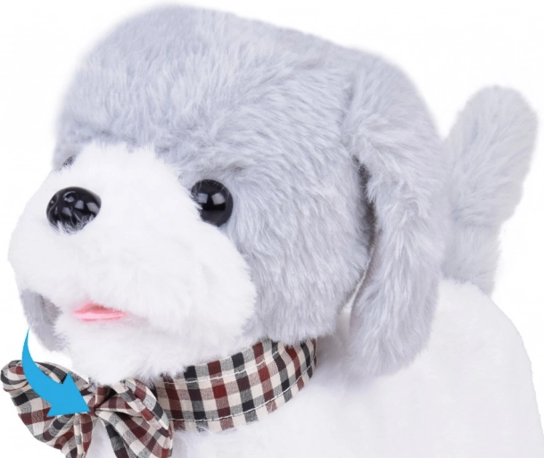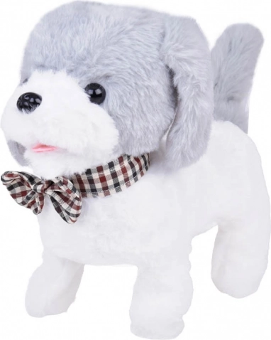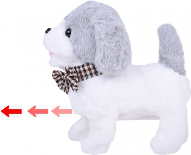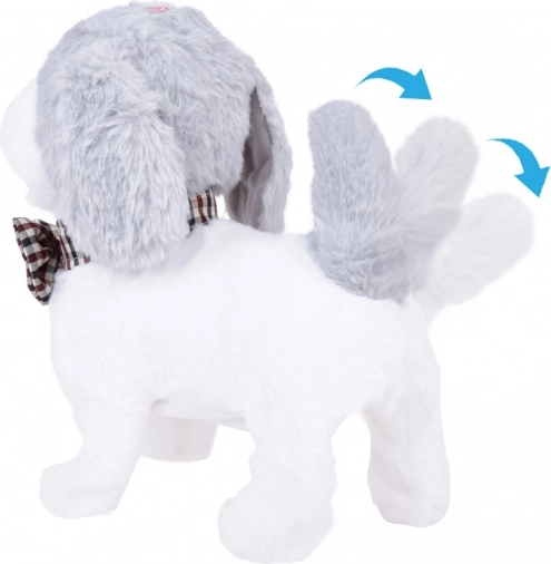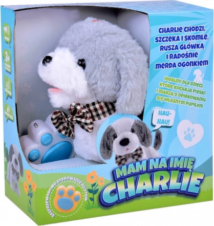 De schattige interactieve hond Charlie in wit‑grijs met een elegant strikje kan lopen, blaffen, piepen en met zijn staart kwispelen. Hij is gemaakt van zachte pluche om mee te knuffelen en dankzij de afstandsbiediening in de vorm van een pootje start je eenvoudig geluiden en bewegingsfuncties. Een geweldige metgezel voor kinderen die verlangen naar een eigen huisdiertje.