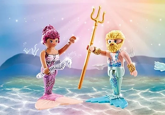 De zeemeermin en de zeeman met drietand vormen het perfecte duo voor het naspelen van sprookjesachtige scènes uit de oceaan.