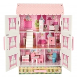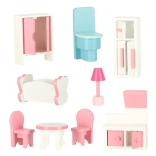De hoogwaardige afwerking van MDF-platen zorgt voor stabiliteit en duurzaamheid. Negen pastelkleurige mini-meubeltjes kun je naar wens verplaatsen om nieuwe verhalen te creëren met poppen, knuffels en figuurtjes.