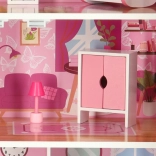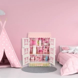 De roze residentie Lulilo Papilio verandert de kinderkamer in een plek vol eindeloze fantasie. De openslaande deurtjes met magnetische sluiting maken opruimen en uitstallen makkelijk, terwijl de onderlade meubels en kleine accessoires herbergt. Het huisje heeft 3 verdiepingen met een keuken, badkamer, slaapkamer, woonkamer en een trap.