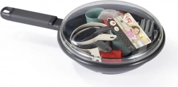 Deze veelzijdige set keukengerei omvat een koekenpan, borden, bestek, mokken en lepels. Het is gemaakt van duurzaam plastic en is ideaal voor dagelijks koken en serveren van gerechten. Verkrijgbaar in twee stijlvolle kleuren - zwart en rood, wat uw keuken de juiste stijl geeft.