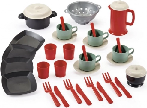 Deze set is ideaal voor kleine gastheren en gastvrouwen die graag theekransjes of lunches organiseren voor hun vrienden en poppen. Eenvoudig mee te nemen dankzij de doorzichtige tas met ritssluiting die alles bevat wat nodig is voor tafeldekken.