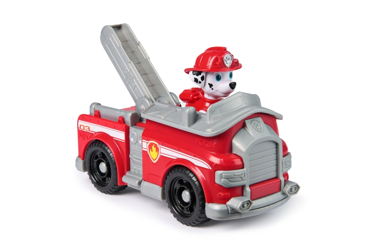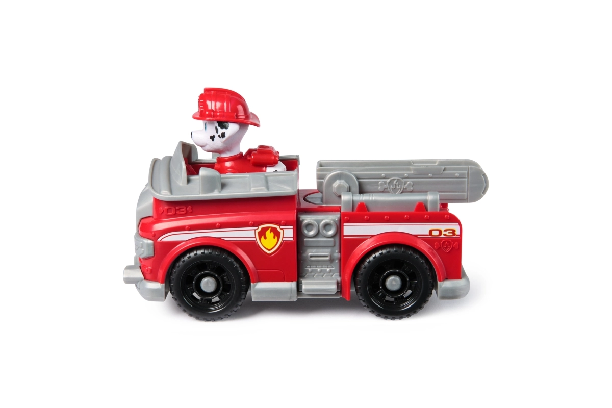 Marshalls rode brandweerwagen met de schattige dalmatiër in uitrusting is ideaal voor kleine fans van reddingsmissies. Kinderen kunnen de figuur eenvoudig in de cabine plaatsen en te hulp schieten met soepel rollende wielen en een uitschuifbare ladder. Authentieke elementen uit de serie ondersteunen creatieve verhalen uit Adventure Bay.