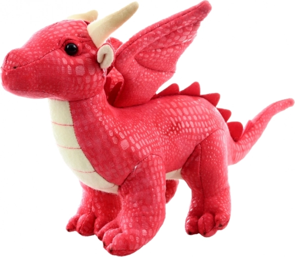 Schattige rode pluchen draak van 20 cm, gemaakt van zacht en knuffelig materiaal, ideaal om mee te knuffelen en te spelen. Dankzij de eco‑friendly afwerking is hij milieuvriendelijker, met een gedetailleerde schubtextuur, crèmekleurig buikje en kleine hoorns. Geschikt vanaf 0+.