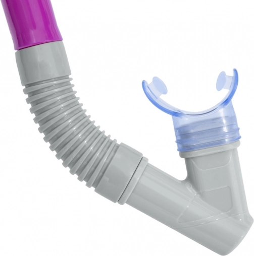 De snorkel is uitgerust met een zacht siliconen mondstuk voor een natuurlijke beet, een uitblaasventiel voor eenvoudig lozen van water en een spatbescherming die het binnendringen van water vanaf het oppervlak beperkt. Een praktische clip houdt de buis in de juiste positie aan de maskerband, zodat de ademhaling stabiel blijft.
