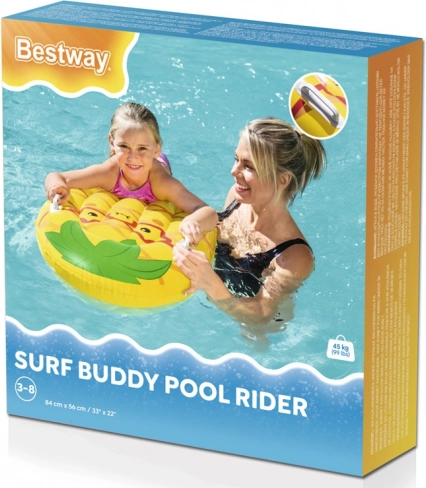Dit BESTWAY kinder-drijfboard combineert een speels fruitig design met functionele elementen voor veilig waterplezier. Twee stevige handgrepen helpen kinderen de stabiliteit te bewaren, terwijl ze ouders ondersteunen bij gezamenlijk “surfen” en balans trainen.