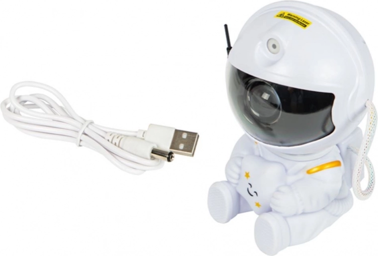 Het ontwerp van de zittende astronaut met een magnetisch bevestigde, volledig draaibare kop (360°) laat je de projectie precies richten waar die het beste uitkomt. De projector is een prachtige decoratie voor zowel de woonkamer als de kinderkamer en dankzij de USB-voeding sluit je hem eenvoudig aan op een adapter, powerbank of computer.