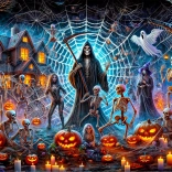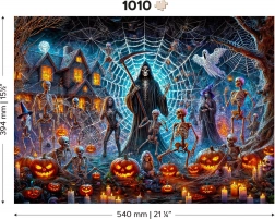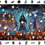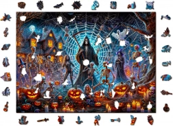 WOODEN CITY houten puzzel met het motief van de Halloweense Heer des Doods is een leuke uitdaging voor liefhebbers van complexere legpuzzels. Dankzij de unieke puzzelstukvormen in de vorm van dieren en de gladde randen is het een product van uitstekende kwaliteit.