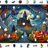 De houten puzzel WOODEN CITY met het thema Halloweenkasteel biedt een unieke puzzelervaring. Elk stukje is precies laser-gesneden, sommige hebben speciale dierenvormen en kunnen op zichzelf staan als kleine figuurtjes. Door de gevarieerde vormen is het leggen uitdagender en des te leuker.