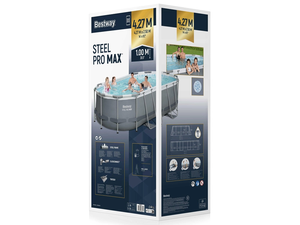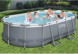 Bestway Power Steel™ framezwembad met afmetingen 424 x 250 x 100 cm en een inhoud van 7.250 l, ideaal voor verfrissing op warme dagen. De elegante rechthoekige vorm is perfect voor zwemmen, spelen en zomers plezier. De installatie is snel: vul met water en het relaxen kan beginnen.