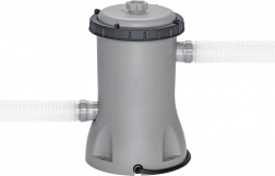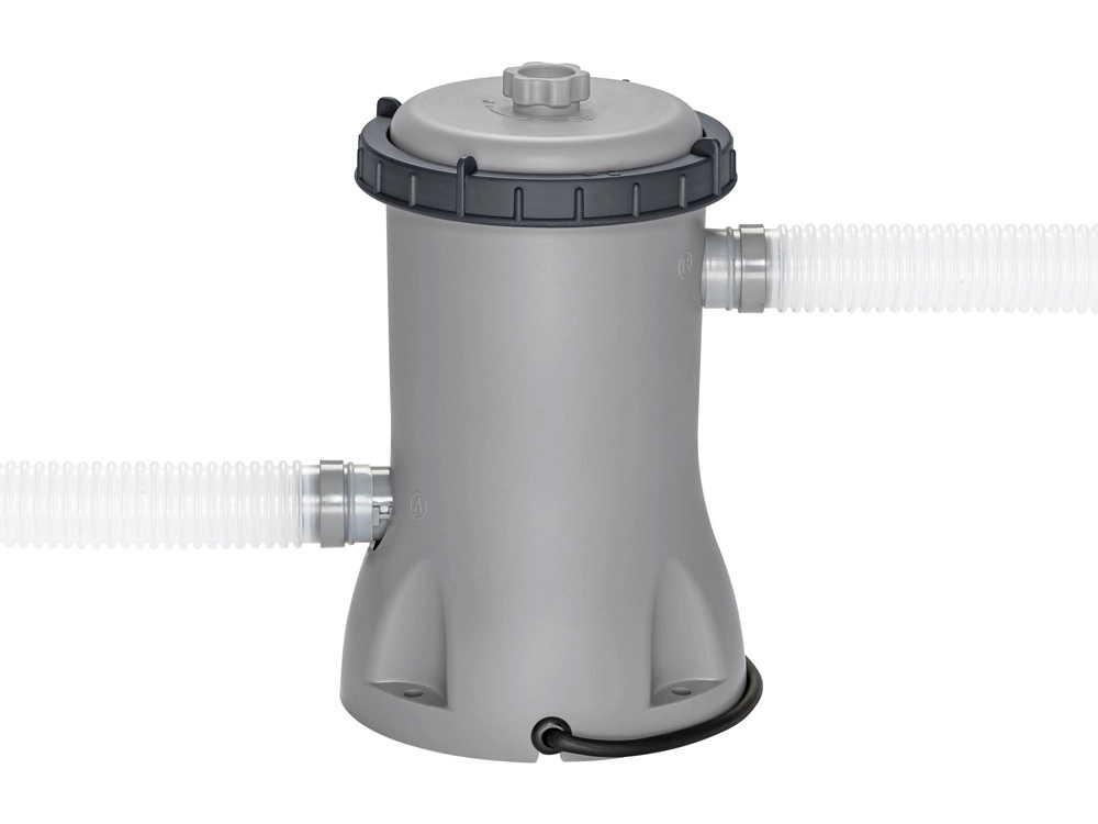 Het zwembad wordt geleverd inclusief filterpomp met een capaciteit van 2.006 l/u, chemische doseerder, slangen, zeefjes, klemmen, veiligheidsladder, reparatiepatch en gebruiksaanwijzing.