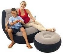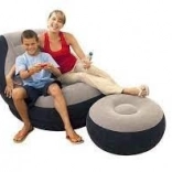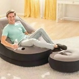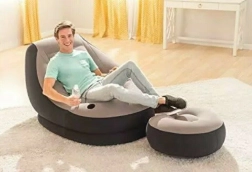 Comfortabele opblaasbare fauteuil met voetenbank, ideaal voor gebruik binnen en buiten. Biedt ultiem comfort voor ontspannen momenten.