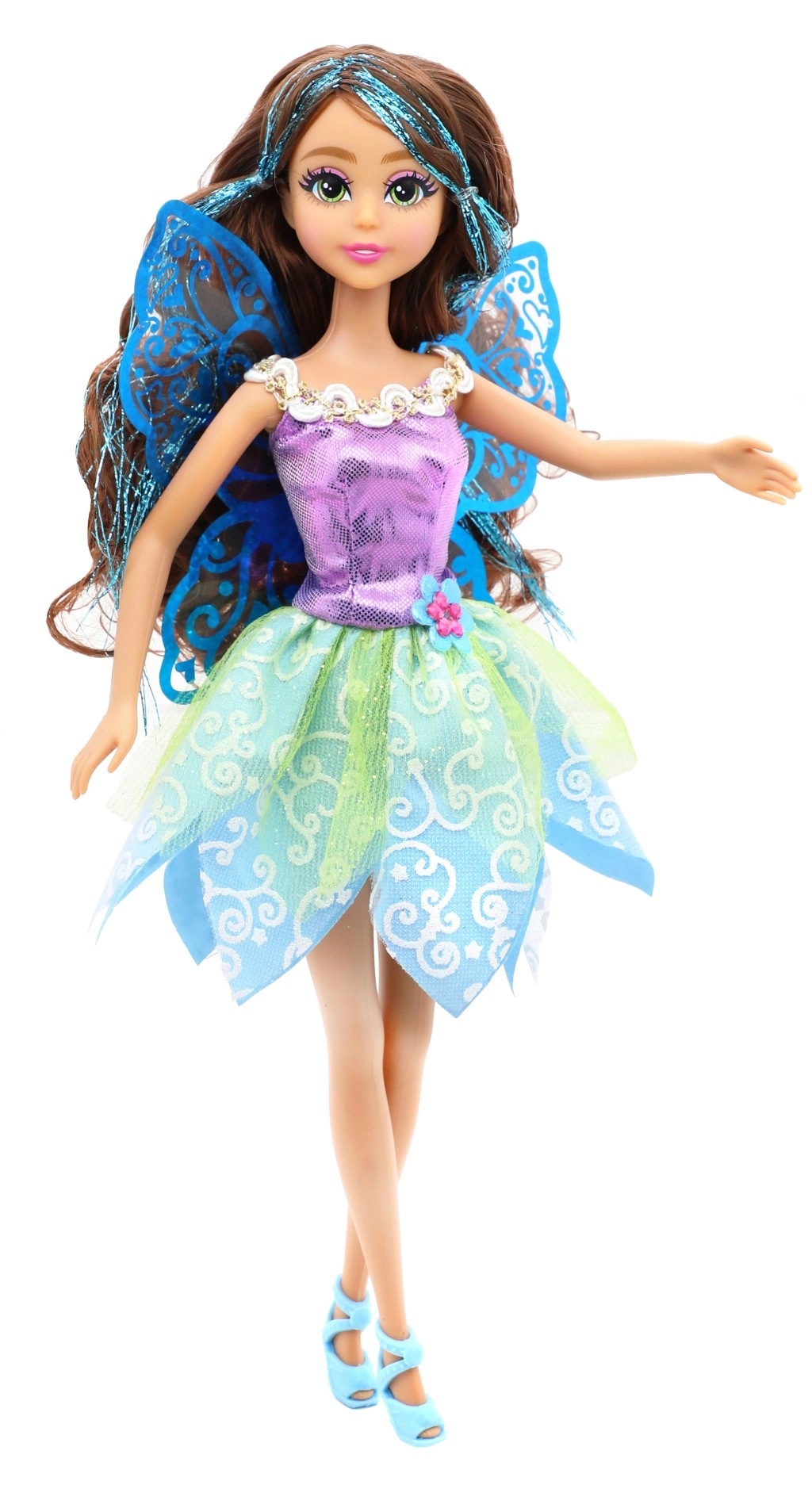 - Feeënvleugels, glinsterende details, kleurrijke outfit