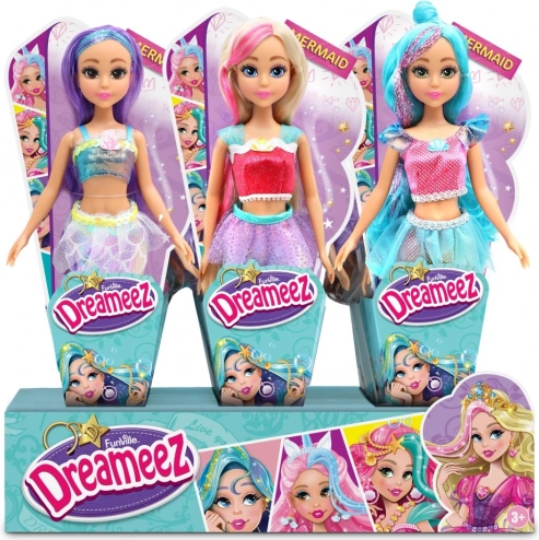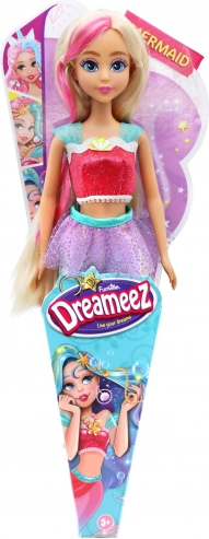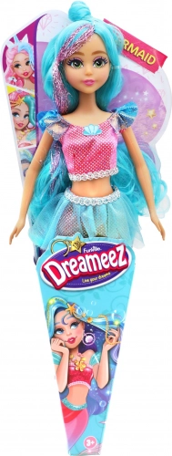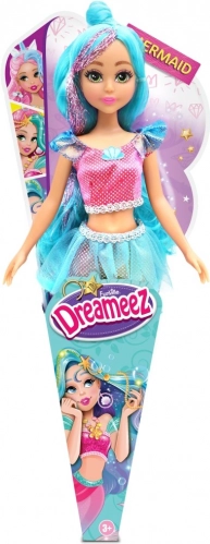 De Dreameez zeemeermin pop in kornet brengt een wereld vol fantasie binnen handbereik. Dankzij de lange, gemakkelijk te stylen haren en de sprankelende, kleurrijke staart is ze klaar voor eindeloze onderwateravonturen. De decoratieve kornet fungeert zowel als mooie verpakking als accessoire voor de kinderkamer.