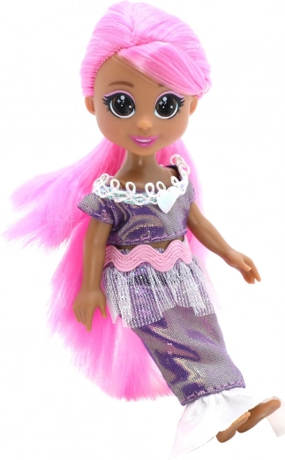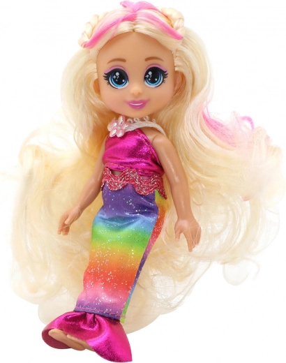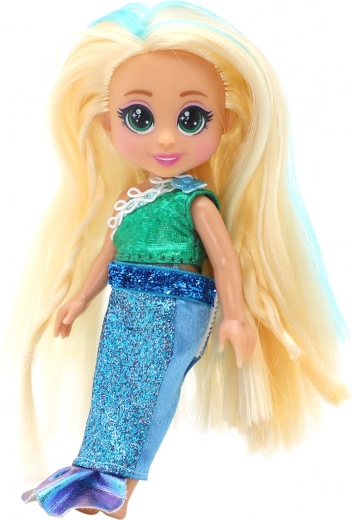 Deze schattige mini-pop is ontworpen voor kleine fantasyliefhebbers. Ze heeft lange, kleurrijke lokken die gemakkelijk te kammen en te stylen zijn, en een charmante outfit geïnspireerd op zeemeerminnen. De hoorntjesverpakking geeft een cadeau-effect en maakt de pop tot een geweldige keuze als beloning of klein presentje.