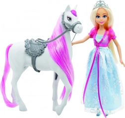De pop is ongeveer 29 cm hoog, draagt een kroon en een rijk gedecoreerde jurk; het paardje is uitgerust met een zadel en hoofdstel. Dankzij de accessoires wordt het spel nog realistischer en leuker – van ritjes tot het verzorgen van de manen.