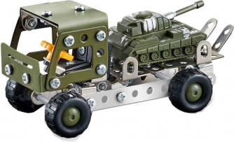 Met deze metalen bouwset kun je een uniek militair voertuig met tank maken. De set bevat een combinatie van metalen onderdelen en plastic accessoires, die worden verbonden met behulp van schroeven en moeren. Het is ontworpen om eenvoudig, leuk en tegelijkertijd uitdagend te zijn: