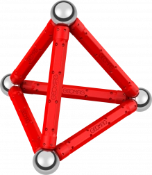 Ontdek de wereld van bouwen met de magnetische bouwset Geomag, waarmee je eenvoudig verschillende geometrische vormen en lichamen kunt bouwen. De set bevat 12 rode magnetische staafjes en 12 stalen bolletjes.