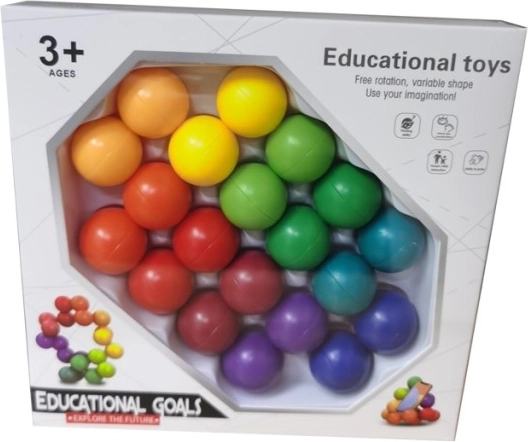 De set kleurrijke verbindingsballen werkt als een leuke en leerzame bouwset. Elke bal draait vrij en verbindt eenvoudig met de andere, zodat kinderen originele vormen, kettingen en 3D-modellen kunnen maken. Het spel traint op natuurlijke wijze concentratie en logisch denken en stimuleert tegelijk de verbeeldingskracht.