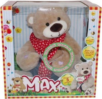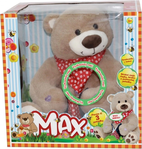 De schattige sprookjesbeer Max vertelt 3 populaire Tsjechische sprookjes – Over Budulínek, Doornroosje en De drie beren. Eenvoudige bediening door op de pootjes en het buikje te drukken, aangenaam hoogwaardig pluche en geschikt voor kinderen vanaf 2 jaar. Inclusief kleurboekje in de verpakking.