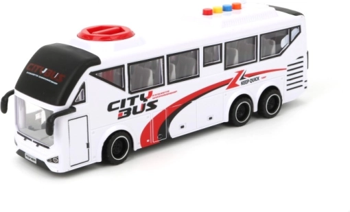 Stijlvolle kinderbus in schaal 1:16 die kleine chauffeurs en vervoersliefhebbers zal verrassen. Biedt een elegant wit design, is ideaal om binnen mee te spelen en stimuleert de ontwikkeling van fantasie en fijne motoriek.