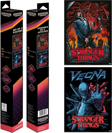 Deze set bevat twee verschillende posters met afmetingen van 38x52 cm. Ideaal voor fans van Stranger Things die hun kamer of kantoor willen sieren met stijlvolle motieven.