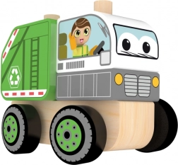 Eenvoudig en slim houten speelgoed: kinderen rijgen gekleurde blokken op 2 stokjes van het chassis en de auto kan vertrekken. Stimuleert fijne motoriek, behendigheid en oog-handcoördinatie.