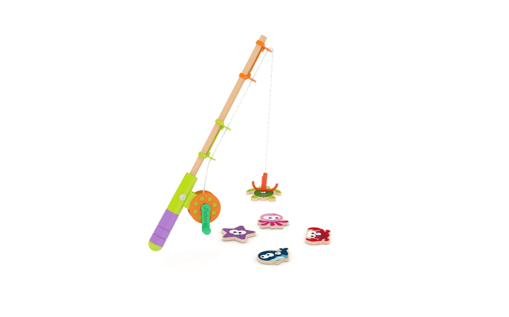 Ga op je eerste visavontuur! Deze houten set biedt eenvoudig en meeslepend speelplezier dat concentratie en geduld stimuleert. De magnetische hengel maakt het vangen van de visjes makkelijk, zodat zelfs de allerkleinsten kunnen meedoen.
