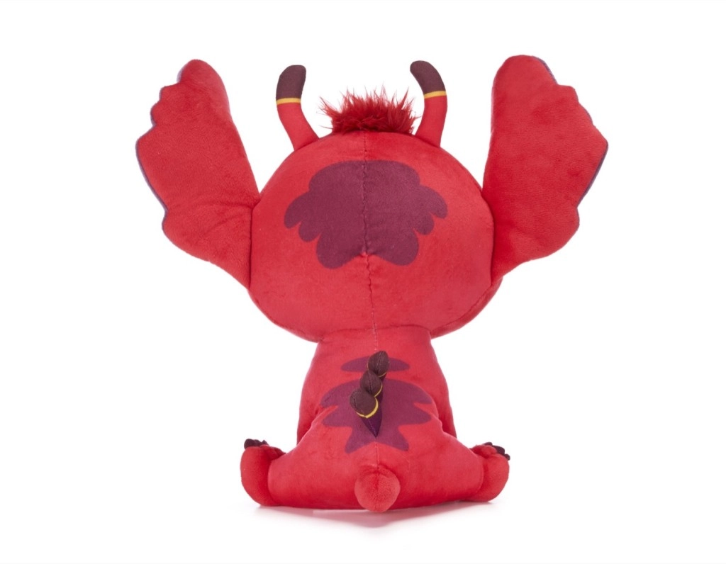 De schattige knuffel Leroy uit de wereld van Lilo & Stitch in het rood maakt ieder kind blij. Hij heeft een zachte, pluizige afwerking en geluidseffecten die geactiveerd worden door op het linkerhandje te drukken. De ideale maat voor fantasiespel, om mee te knuffelen of als stijlvolle decoratie voor de kinderkamer.