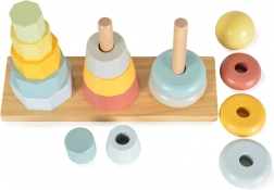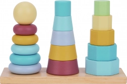 De drie torens van Tooky Toy bieden kinderen zowel plezier als leren in één. De pastelvormen zijn makkelijk vast te pakken, worden op de houten basis gestapeld en laten kinderen kleuren, vormen en maten ontdekken. Ideaal als eerste educatief houten speelgoed voor de kinderkamer.
