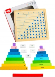 Ontdek een leuke manier om kinderen wiskunde bij te brengen: het houten TOOKY TOY-bord met kleurrijke blokken en symbolen leert tellen, optellen en aftrekken. Dankzij de visuele elementen en de hoogwaardige afwerking ontwikkelen kinderen logisch denken, fijne motoriek en basisrekenvaardigheden. Alles wordt opgeborgen in een overzichtelijke houten plaat – orde en leren in één.