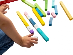Kinderen manipuleren de stukjes, sorteren kleuren en maken vergelijkingen – zo ontwikkelen ze spelenderwijs zowel de fijne motoriek als het logisch denken.