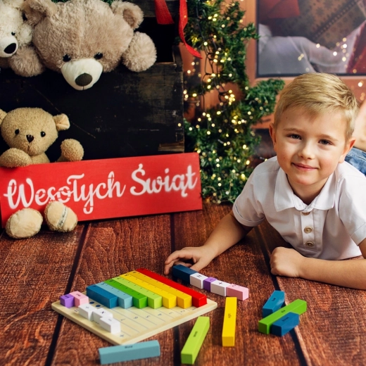 Het speelgoed is ideaal voor beginners die de cijfers al kennen en tellen, optellen en aftrekken willen oefenen. Veilig, glad afgewerkt hout en niet-giftige verf garanderen veilig spelen. Na het spelen kunnen alle stukjes weer in het bord worden opgeborgen, zodat alles altijd bij elkaar blijft.