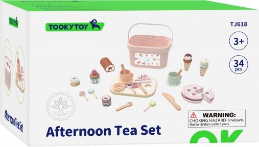 Ontdek de magie van een kindercafé met de houten Sweet Cake-set van Tooky Toy. Kleurrijke desserts, een snijtaart en rol, servies en een serveerschaal stimuleren creatief spel, de ontwikkeling van... Meer tonen