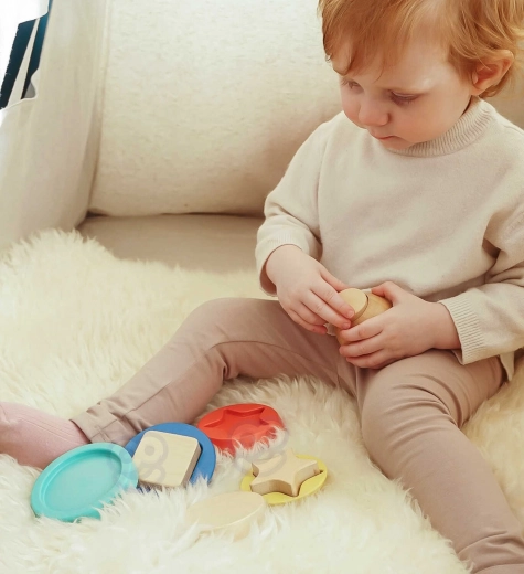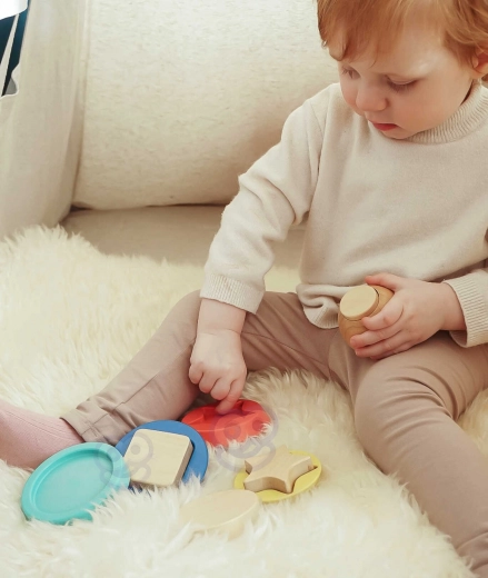 Het kind leert spelenderwijs kleuren, vormen en groottes te onderscheiden en ontwikkelt logisch denken en geduld.