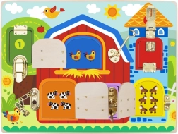Dit kwaliteitsvolle houten bord biedt 6 scharnierende raampjes met verschillende mechanismen – van klassieke grendels tot kettinkjes en haakjes. Kinderen oefenen hun vingers, concentratie en geduld wanneer ze elk slot openen en sluiten om de schattige dierafbeeldingen te ontdekken.