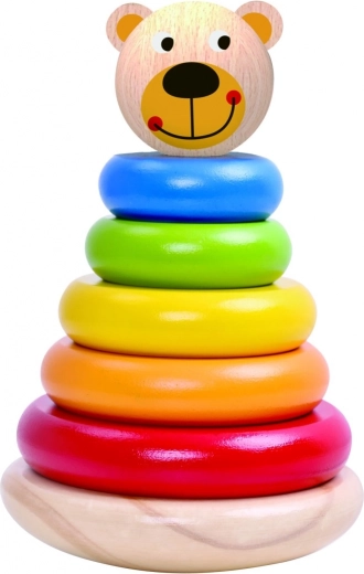 Deze houten stapeltoren met berenmotief is ideaal voor de eerste bouwspelletjes. Kinderen rijgen gekleurde houten schijfjes op de pin en leren maten en kleuren herkennen. Het spel ontwikkelt fijne motoriek, logisch denken en concentratie.