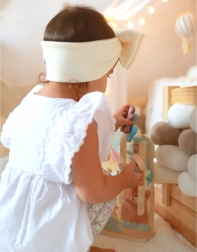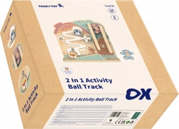 Deze hoogwaardige houten activiteitentafel combineert een doolhof en een baan tot één speels geheel. Kinderen helpen de vrolijke dieren – het konijn, de vos en de popperige aapjes – door bochtige paadjes en afdalingen. Het spel eindigt met een lief gerinkel van het belletje, wat het gehoor prikkelt en succeservaringen versterkt.