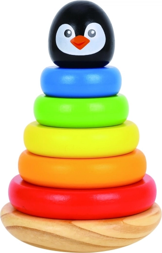 Deze houten stapeltoren met vrolijke kleuren en een pinguïnmotief is ideaal voor jongere kinderen. In de verpakking vind je een stabiele basis met pin en meerdere gekleurde houten ringen waarmee kinderen hun eigen toren bouwen. Het spel prikkelt de zintuigen, ondersteunt de concentratie en geeft plezier bij elke geslaagde stapeling.