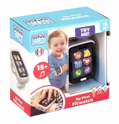 Mijn eerste horloge is een geweldige keuze voor kleine avonturiers die volwassenen willen nadoen. Kinderen kunnen ermee “bellen”, geluiden en melodieën ontdekken en zo hun fantasie en fijne motoriek ontwikkelen. Het lichte en comfortabele design is ideaal voor de hele dag spelen.