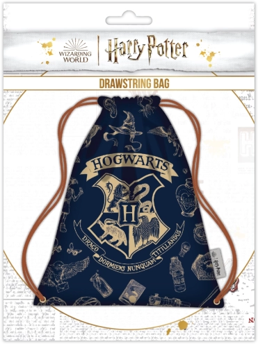 Stijlvol zakje voor gymschoenen of sportspullen met Harry Potter-motief in marineblauw en goud. Praktisch trekkoordsluiting zorgt voor snel afsluiten en comfortabel dragen op de rug.