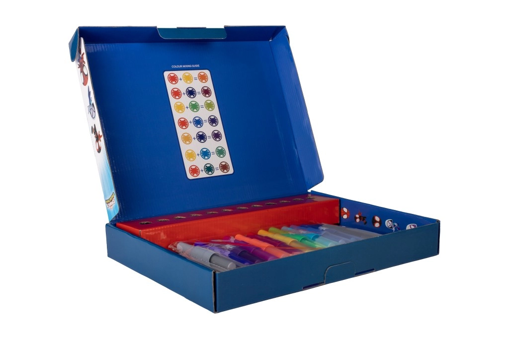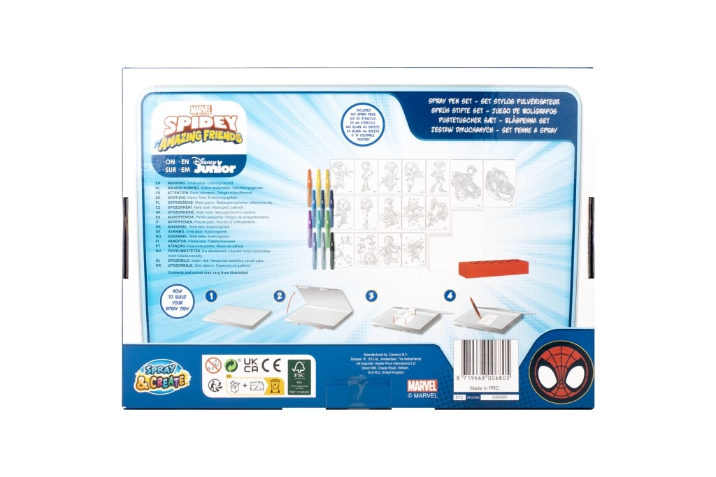 Ontdek de creatieve wereld van tekenen met de Spidey set met spraystiften! Deze complete set is ideaal voor alle kleine kunstenaars die graag geweldige afbeeldingen maken met spraystiften.